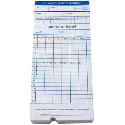 | Typ: | Punch-Card-Uhr, monatliche Gehaltskarten (wöchentlich optional) | Name: | Bimi Zeitkarten 50 Stück pro Packung |